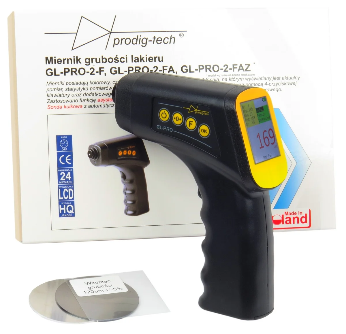 - GL-PRO-2-FA, pomiar na blachach stalowych i aluminiowych (automatyczne rozpoznanie materiału)